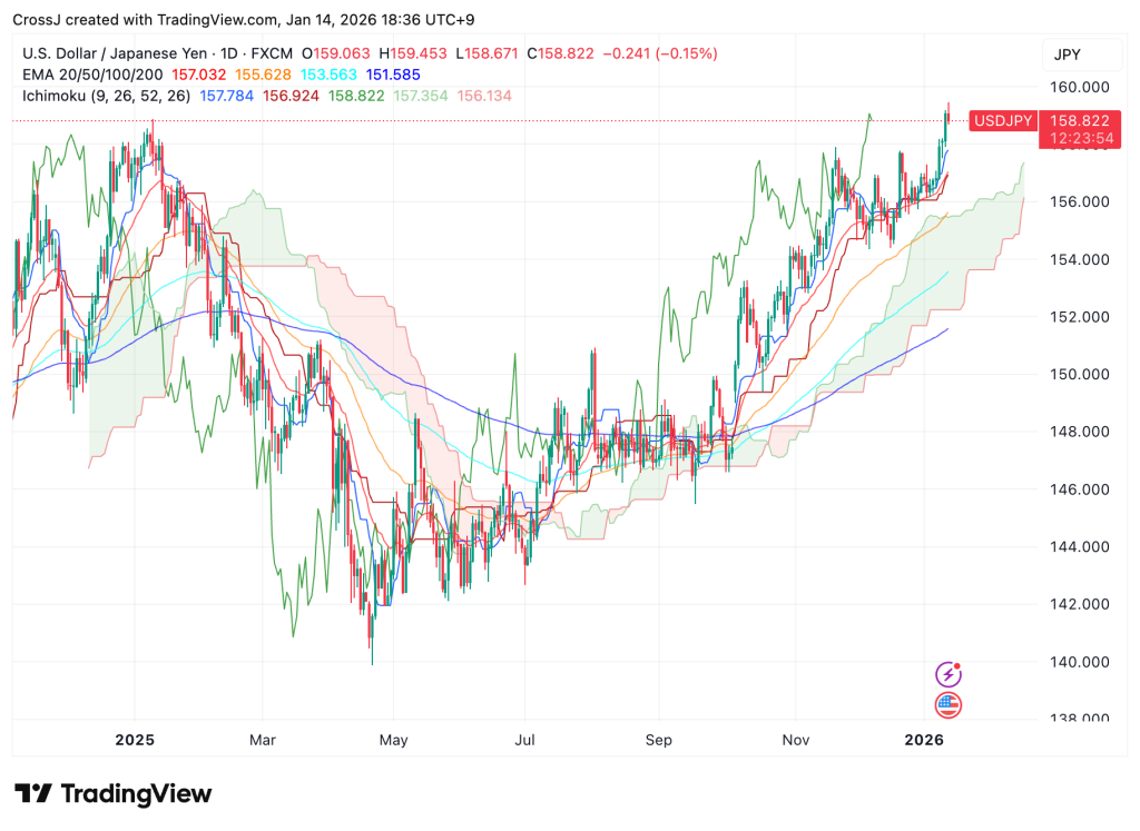グラフ6:Trading View 米ドル・日本円為替チャート(2026年1月14日時点)
