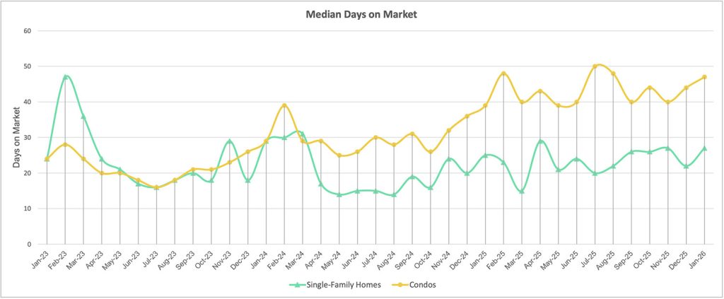 販売期間は前年より延びており、特にコンドミニアム市場では売却までの時間が長くなる傾向が見られます。これは需要が減少しているというより、買い手が価格や条件をより慎重に見極めている結果と整理するのが妥当です。