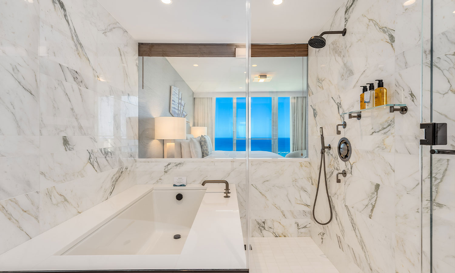 大理石を贅沢に使用したバスルームからは、海景を望みながらゆったりとバスタイムを満喫できます。