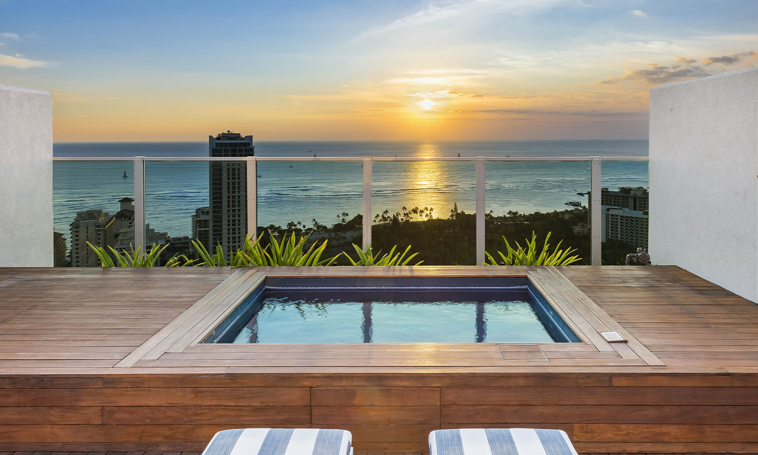 37・38階の2フロアと屋上テラスから構成されるメゾネット空間では、ワイキキのサンセットを独り占めするような特別な時間をお過ごしいただけます。