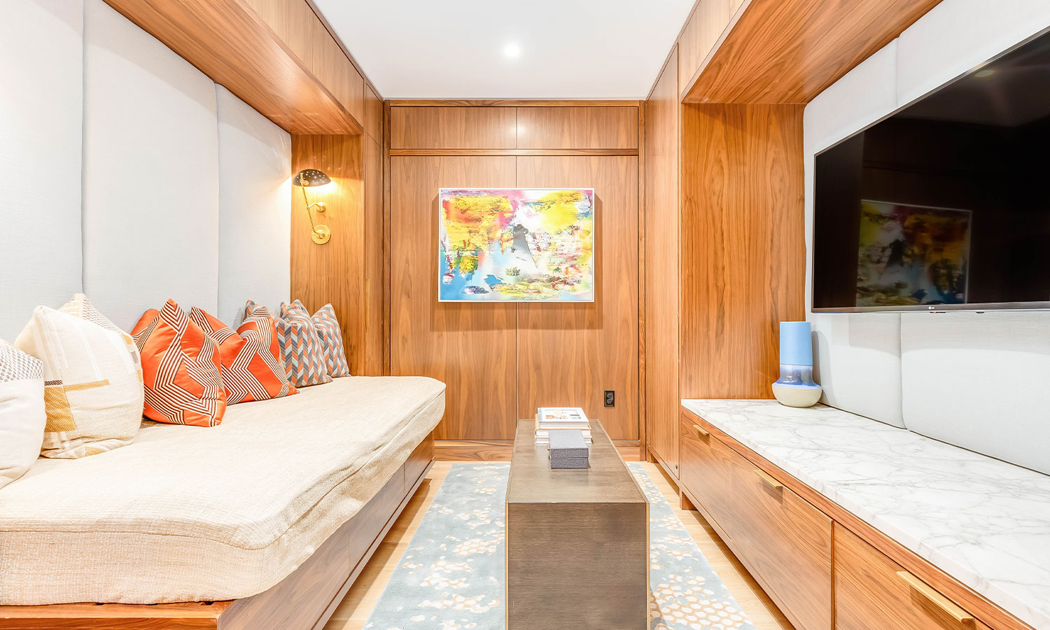 読書や映画鑑賞に最適なDENには大型モニターを備え、プライベートなミニシアターとしても利用可能です。