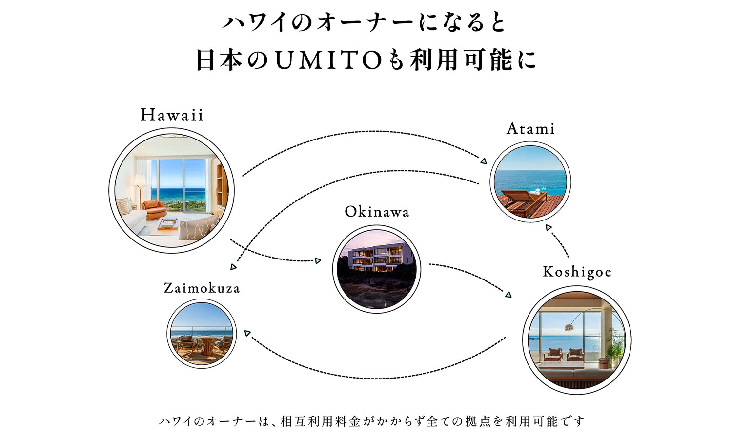 会員権購入者は、日本国内のUMITOも相互利用が可能。また、国内のUMITOオーナーも、本施設を利用いただけます。